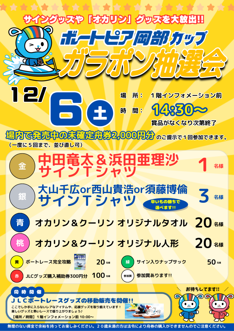 12月6日(土)14:30~「ボートピア岡部カップガラポン抽選会」