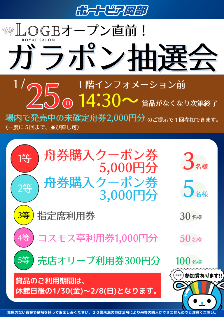 1月25日(LOGE(ロージュ)オープン直前!ガラポン抽選会を開催!